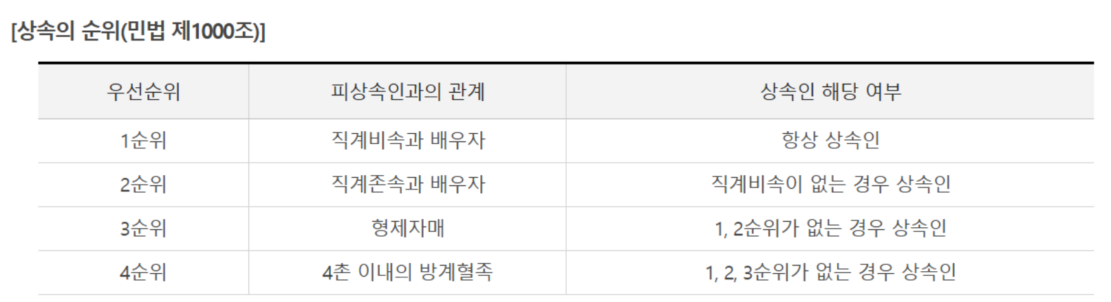 상속세는 상속 개시(사망 또는 실종) 시 피상속인으로부터 상속인에게 이전되는 재산에 부과되는 세금입니다. 유언에 별도로 명시된 경우 유언에 따르지만, 별도 유언이 없는 경우 직계비속 및 배우자가 1순위, 형제자매가 2순위, 4촌 이내의 방계 혈족이 3순위로 상속을 받습니다.